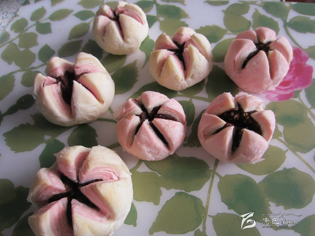 紅色面團(tuán):低粉65克 糖25克 植物油15克 水30克 紅曲粉5克