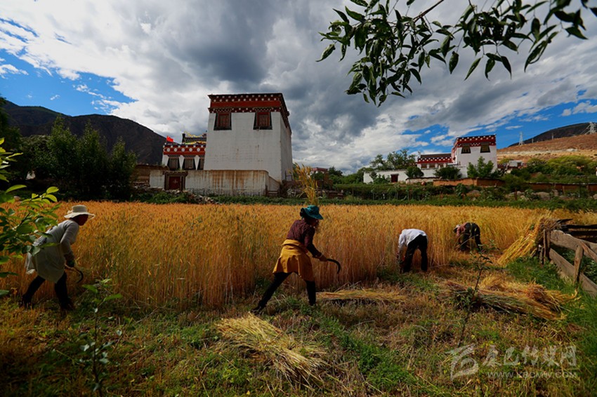 在青德鎮(zhèn)的田地里,隨處可見百姓忙碌收割的身影。熱龔村村民洛絨擁中雖然已忙得滿頭大汗,但是喜悅之情卻溢于言表,她說,由于今年風(fēng)調(diào)雨順,家里種植的青稞和小麥收成比往年要好,趁這幾天天氣晴好抓緊搶收。筆者在地里看到,有不少收割完的農(nóng)戶正在幫助缺少勞動力的家庭,大家相互協(xié)作確保顆粒歸倉。據(jù)了解, 今年鄉(xiāng)城縣小麥和青稞種植面積達3萬余畝,長勢普遍較好。