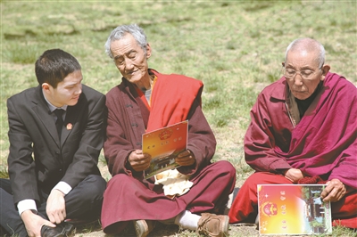 藏漢雙語法制宣講進寺廟。