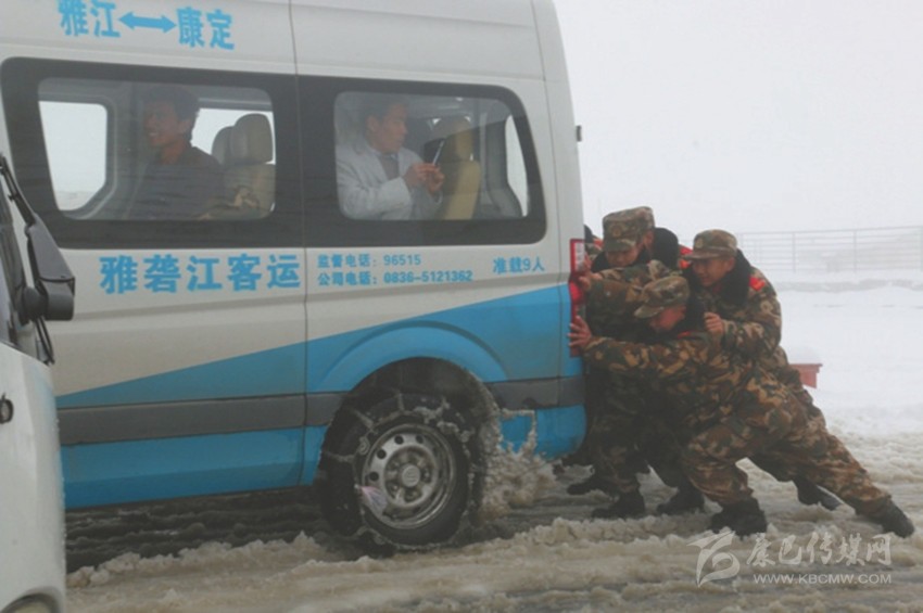 27日13時19分,前方記者傳回最新山頂?shù)缆繁Mㄇ闆r。州公路局已協(xié)調(diào)州本級、康定市和瀘定縣公路管理部門,出動3臺大型機具,投入54人次,推雪清障,并沿途鋪撒10余立方米防滑沙;交警部門有序疏導滯留車輛緩慢下山,武警戰(zhàn)士和其他相關(guān)人員全力清障保暢通。