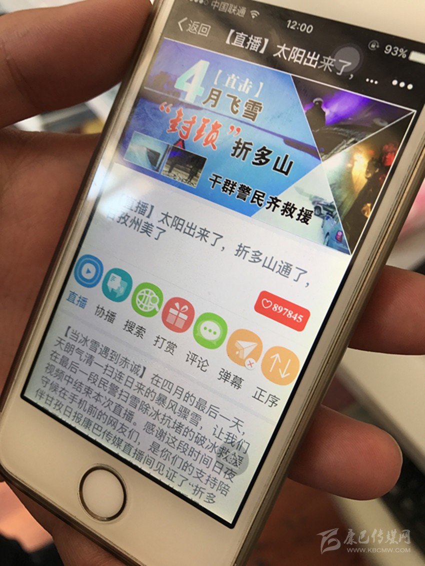 5月2日,隨著5.1小長假結(jié)束,甘孜日報(bào)對折多山突降大雪、引發(fā)交通堵塞的立體式報(bào)道告一段落,作為突發(fā)災(zāi)害性天氣,甘孜日報(bào)行動(dòng)迅速,傳統(tǒng)媒體、掌上直播、康巴微信、甘孜發(fā)布等全媒體齊上陣,掌上直播《4月飛雪“封鎖”折多山,干群警民齊救援》,以其即時(shí)消息、圖片、視頻等海量信息,引發(fā)點(diǎn)擊“狂潮”,不到兩個(gè)小時(shí),點(diǎn)擊量即超過35萬人次,至小長假結(jié)束,點(diǎn)擊量近百萬人次;康巴傳媒微信《4月飛雪,千人馳援》點(diǎn)擊量超12萬人次;甘孜日報(bào)社對折多山大雪現(xiàn)場立體交叉式直播被新華社、中國新聞網(wǎng)、華西都市報(bào)封面新聞、網(wǎng)易新聞?lì)l道等州外媒體分別轉(zhuǎn)載或引用相關(guān)報(bào)道。我州應(yīng)急措施有力、有序,得到眾多媒體和網(wǎng)友紛紛點(diǎn)贊。州委常委、宣傳部長相洛稱贊甘孜日報(bào)在這次直播中,行動(dòng)迅速、引導(dǎo)有力,既客觀報(bào)道了突發(fā)性災(zāi)害天氣對我州交通和旅游帶來的不利影響,更突出報(bào)道了我州和康定市采取的各項(xiàng)應(yīng)急措施,是一次媒體融合的有益嘗試。