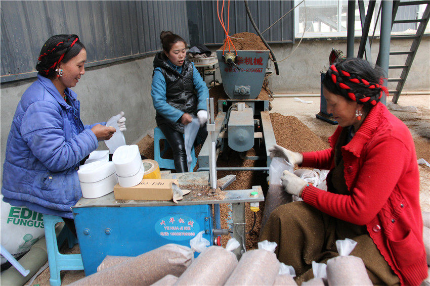 在雅江食用菌產(chǎn)業(yè)園區(qū)務工的村民。