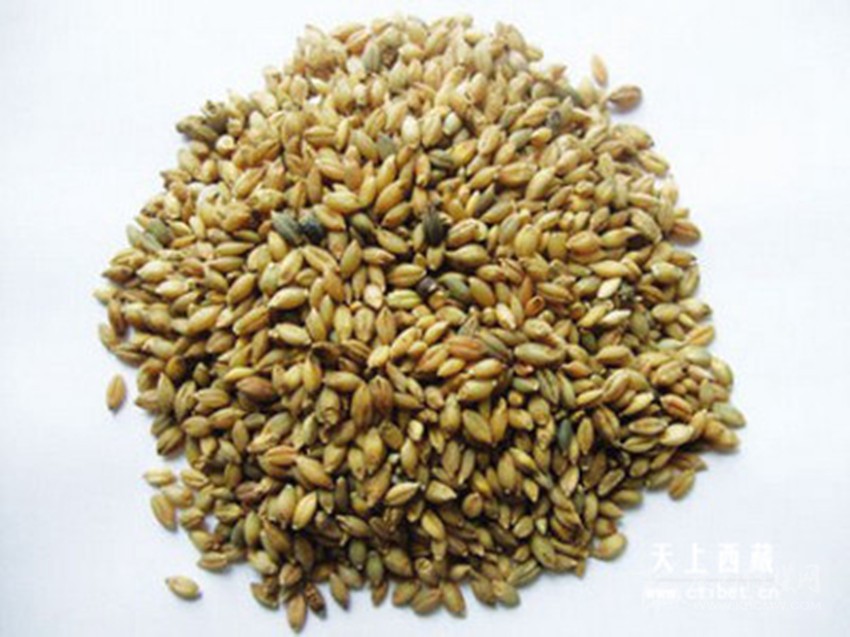 糌粑曾是藏族的主食,形似內(nèi)地的炒面,原料以青棵為主。做法是選好青稞或豌豆、燕麥后淘凈,晾干,炒熟,磨成面粉,磨好后稱為糌粑面,磨得越細(xì)越好。吃糌粑時,根據(jù)各自愛好,還可以放些奶渣或白糖,然后加酥油茶或清茶,中指按逆時針方向反復(fù)揉拌均勻,再用手捏成團狀,直接用手往口里送。也有用青稞酒調(diào)糌粑的,做出的“粑”甘甜醇香,別有風(fēng)味。