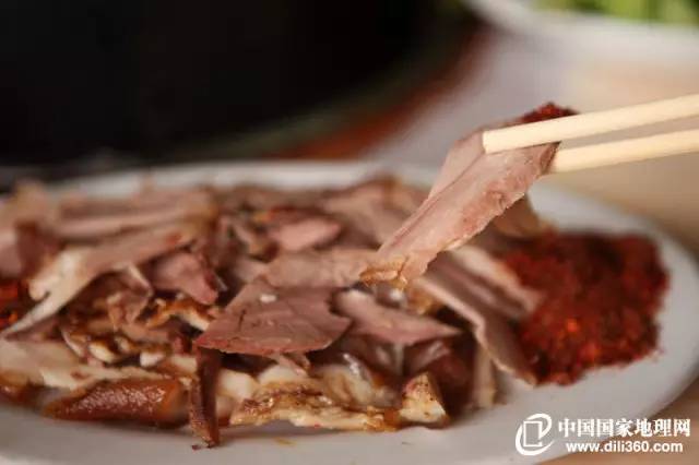 第一種吃法就是燉坨坨肉配藏式蘸料,此時肉被燉爛,肉的原味配上蘸料的香味,容易咀嚼和食用。